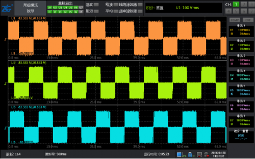 此時將系統運行起來,通過功率分析儀的數據和波形再次進行驗證,電壓波形圖和矢量圖都很完美。
