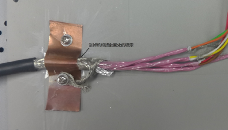 從安全方面考慮,三個機柜都必須接大地,強電線路與信號線分開避免干擾這些都是要遵循的基本原則。實際機柜間位置較遠,接地對于高頻干擾改善不多,只作為安全措施。解決這種問題一般考慮是從干擾源、傳播路徑、敏感設備三方面著手。驅動器和功率分析儀是成型的設備,不便于改動,考慮從傳播路徑入手,使用多芯屏蔽電纜連接扭矩傳感器到測控柜,傳感器端屏蔽層連接到傳感器外殼,也與電機平臺連通,另一側屏蔽層接到測控柜機殼。最初的時候屏蔽層通過一根較長的線連接到測控柜,發(fā)現并沒有改善,最后使用銅片將整根線壓到機柜,干擾得到很大衰減。