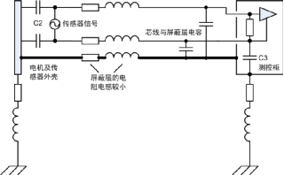 4)此處電機平臺和測控柜已有接地,通過傳感器連接線屏蔽層又將兩者連接,形成地環(huán)路。然而實際工程應用中地環(huán)路往往不可避免地存在,本例中若沒有屏蔽層依然會通過C2、電纜和C3產生高頻地環(huán)路,從這方面看屏蔽層改變了環(huán)路路徑。