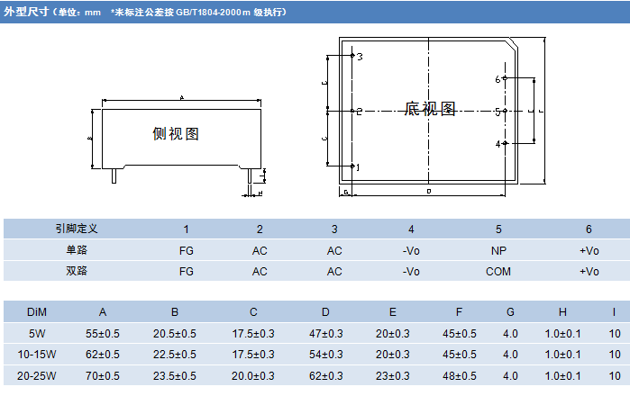 電源尺寸:62mmx45mmx22.5