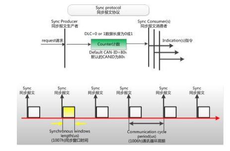 一般同步報文由NMT(網絡管理)主機發出,CAN報文的數據為0字節。但如果一個網絡內有2個同步機制,就需要設置不同的同步節拍,比如某些節點按1個同步幀發送1次PDO,其他的節點收到2個同步幀才發送1此PDO,